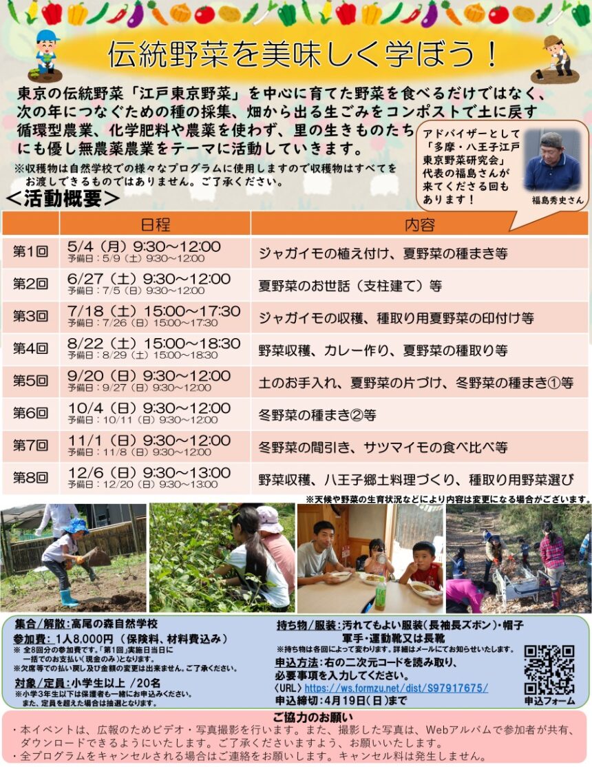 【高尾の森自然学校】伝統野菜を美味しく学ぼう!