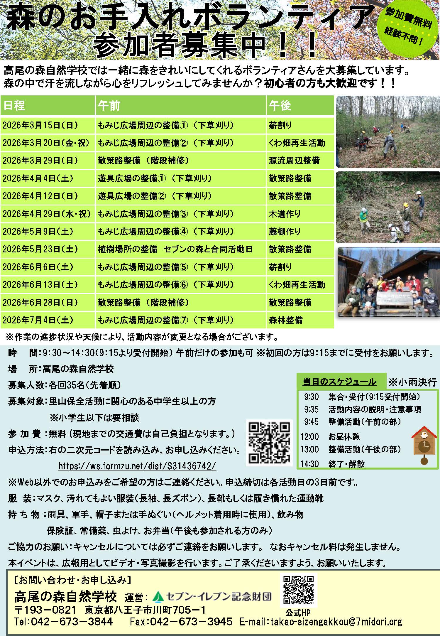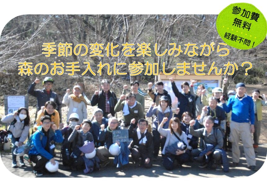 高尾の森自然学校では、里山保全活動のボランティアを募集しています。あなたの元気をボランティア活動で活かしませんか?学生さんも、社会人も、シニアも、興味があれば誰でもOK! 初心者の方も大歓迎です。皆様のご参加をお待ちしております。